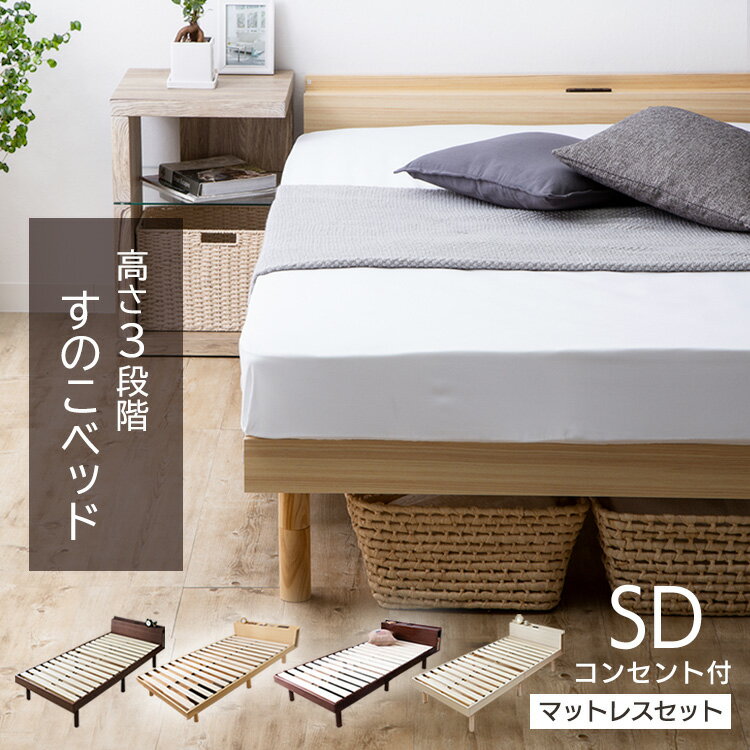 ベッド フレーム単品 マットレスセット 3段階 すのこベッド セミダブル コンセント付 棚コンセント付き頑丈スノコベッド セミダブル 天然木パイン材 コンセント付き 高さ3段階 マットレス付き【D】 一人【TN】【SUTU】[p2]