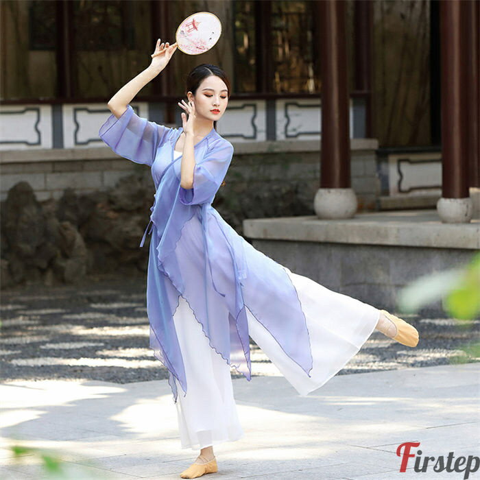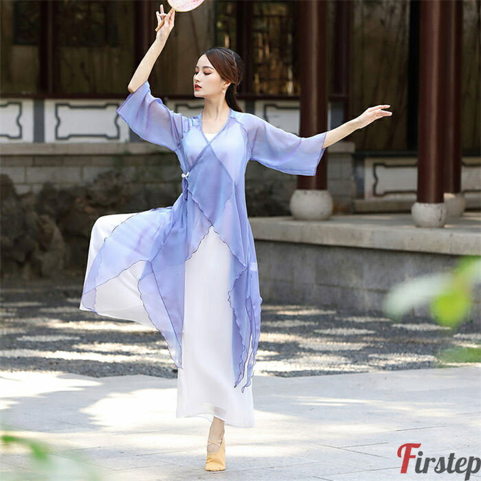 古典ダンス衣装 3点セット 古典ヨガバレエ衣装 ロング羽織 ガウチョパンツ ワイドパンツ モダンドレス 古典舞踊ダンスウエア セットアップ スリットカバー ブラウス シフォンワイドパンツ シースルー 古典ヨガバレエ衣装 練習着レッスンウエア