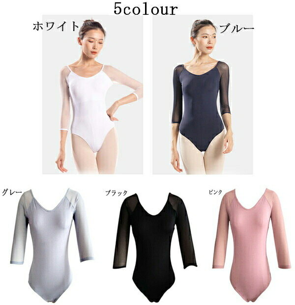 バレエ レオタード レディース レッスン着 バレエ バレリーナ ダンス衣装 袖あり 長袖 透け感 コスチューム コンクール シースルー 肌透け オープンバッグ 無地 練習着 ダンスウエア グレー 青 黒 ピンク 白 dm034x2x2jc