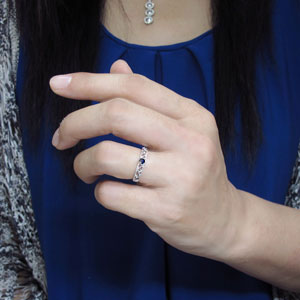 TEL:0552368200 メール:plejour@almond.ocn.ne.jp ギフト対応・刻印についてはこちらから9月誕生石サファイアを使用したシルバー製の、 王冠&唐草モチーフのリング(指輪)です。