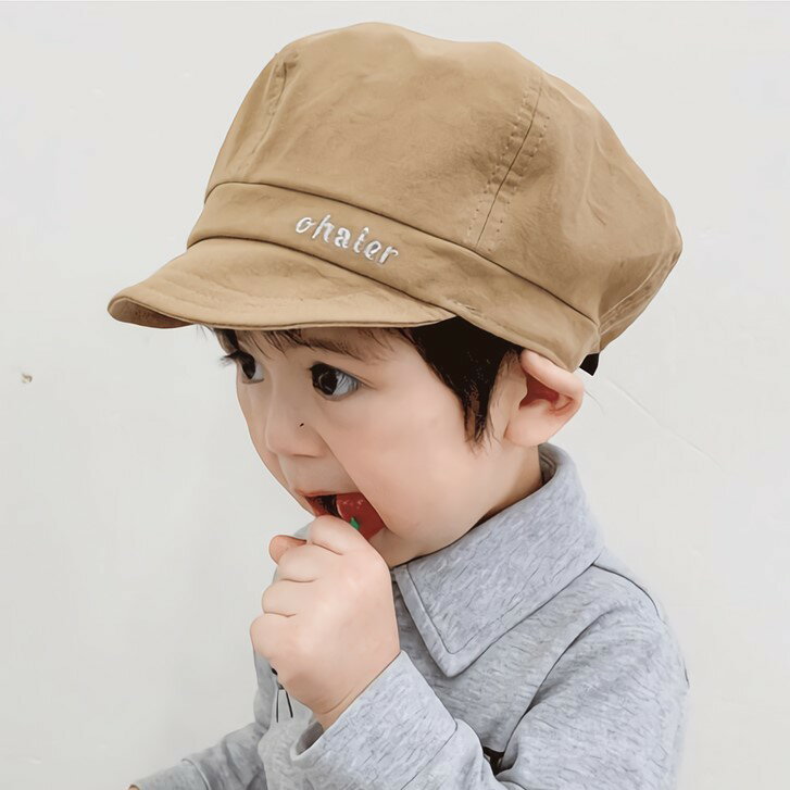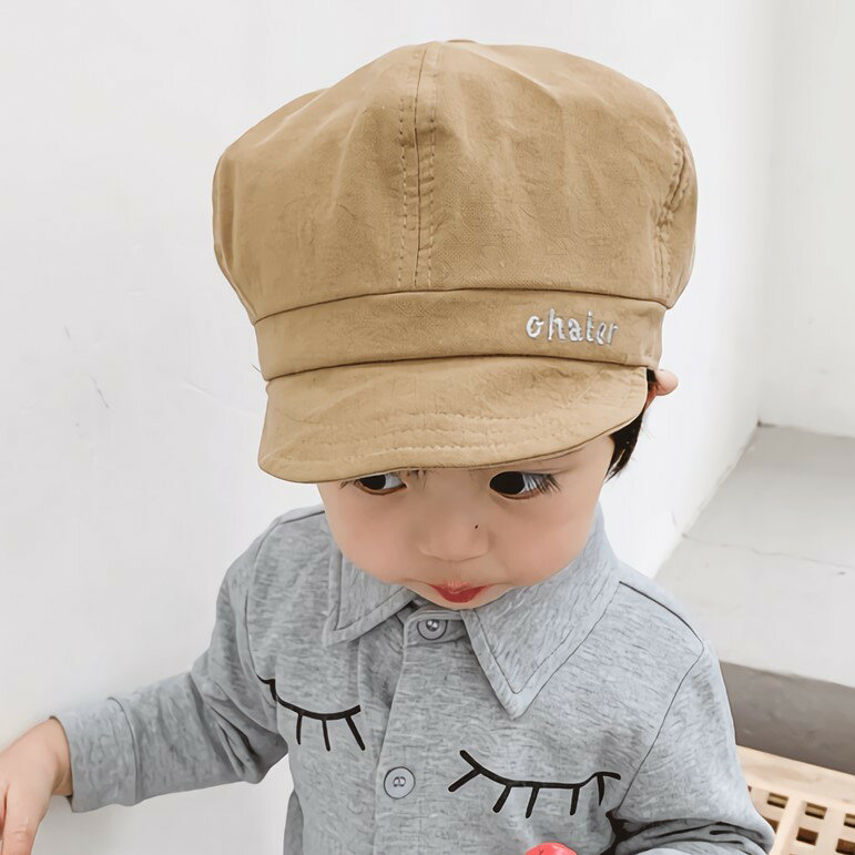 送料無料 キャスケット 帽子 キッズ ベビー 子供 男の子 女の子 ロゴ 刺繍 シンプル 日よけ 紫外線 熱中症 対策 かっこいい おしゃれ お出かけ お散歩 通園 通学 英字 イエロー ブラック カーキ キャラメル