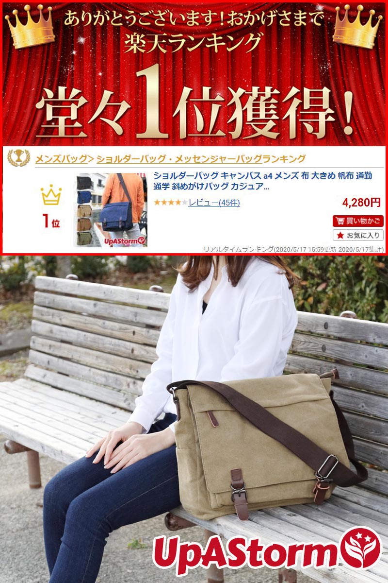 【楽天1位入賞 】ショルダーバッグ キャンバス a4 メンズ 布 大きめ 帆布 通勤 通学 斜めがけバッグ カジュアル 布 レディース 大容量 A4 B4 ファイル シンプル 丈夫 人気 肩掛け 斜め掛け 大人 男性 送料無料 UpAStorm 【Lサイズ】