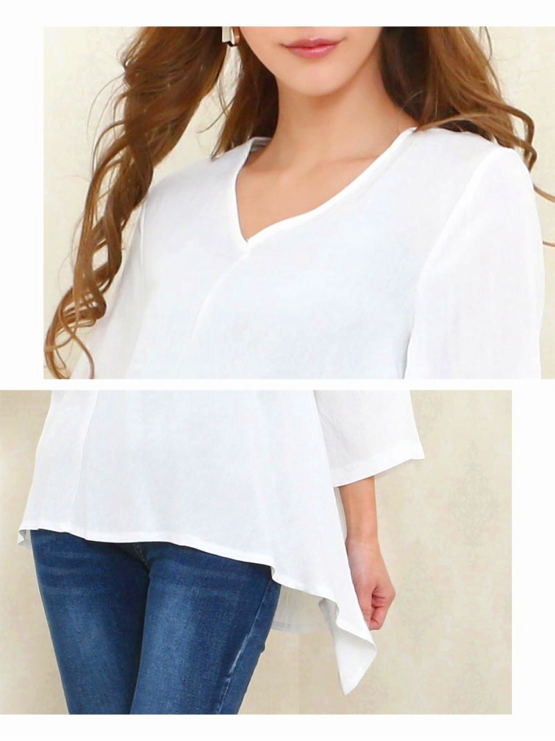 前後の丈感がちがうアシンメトリーデザインのゆるVネックチュニックは自然に上半身をカバーしてくれるのでキャバ嬢さんにもオススメ♪